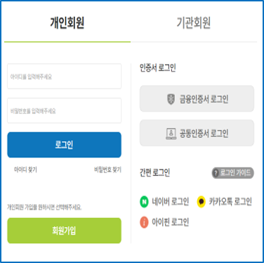 (간편로그인, 공인인증서 등)